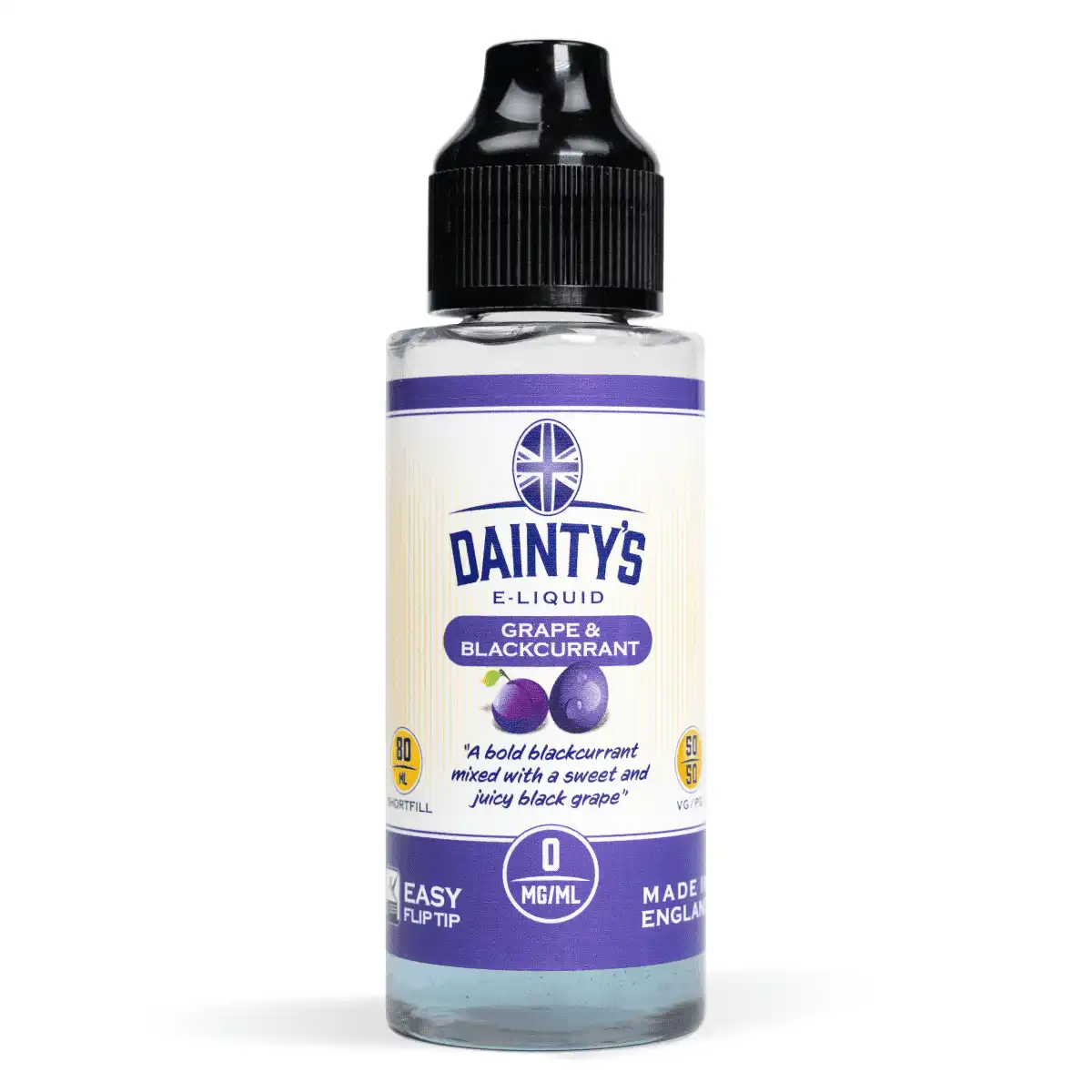 Shop UK-made Dainty’s 80ml e-liquid shortfills with zero nicotine, available in 13 mouth-watering flavours with a 50/50 ratio of VG/PG making this vape liquid suitable for use in MTL devices such as vape pods, vape pens and refillable disposable vapes.