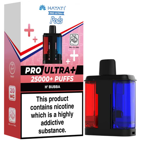 - 2 × Hayati Pro Ultra+ 10 ml auto-refilling e-liquid tanks (20 mg nic salt)